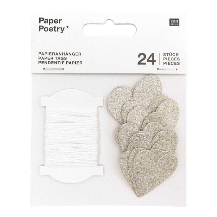Étiquettes à suspendre - RICO DESIGN - Petits cœurs à paillettes - Couleur gris - Mixte - 24 pièces