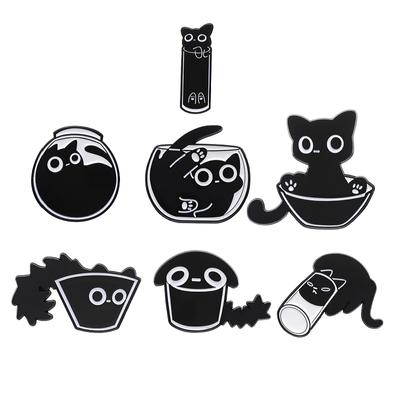Unique Minimalist Black Cat Cartoon Brooch Set Adorable Creative Animal Accessories