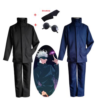 Anime Jujutsu Kaisen Gojo Satoru Cosplay Costume for Kids Adults Blue Black Uniform Eyes Patch Wig Sunglasses Children Suit Kids