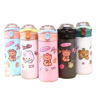 304 Stainless Steel Vacuum Cup Large Capacity Student Portable Bounce Cup Portable Cover Cartoon Cute Straw Cup
