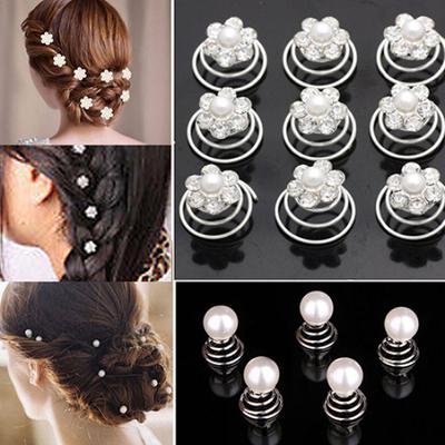 12pcs Bridal Crystal Pearl Flower Spiral Twist Hair Pins Clips Wedding Jewelry Bride Headdress Women Hair Accessories