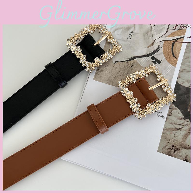 Stylish Design: Featuring a trendy square buckle with rhinestone embellishments, this belt adds a touch of elegance to any outfit.