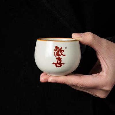 Ru Kiln Happy Meditation Teacup Personal Special Tea Cup Ceramic Master Cup Open Piece Can Raise Household Tea Bowl