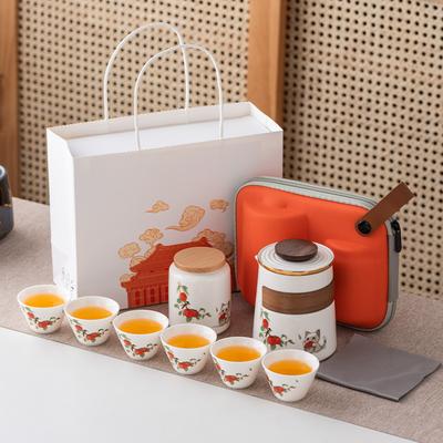 Persimmon Ruyi Suet Jade Kung Fu Travel Tea Set Outdoor Portable Set Gift Box Business Gifts