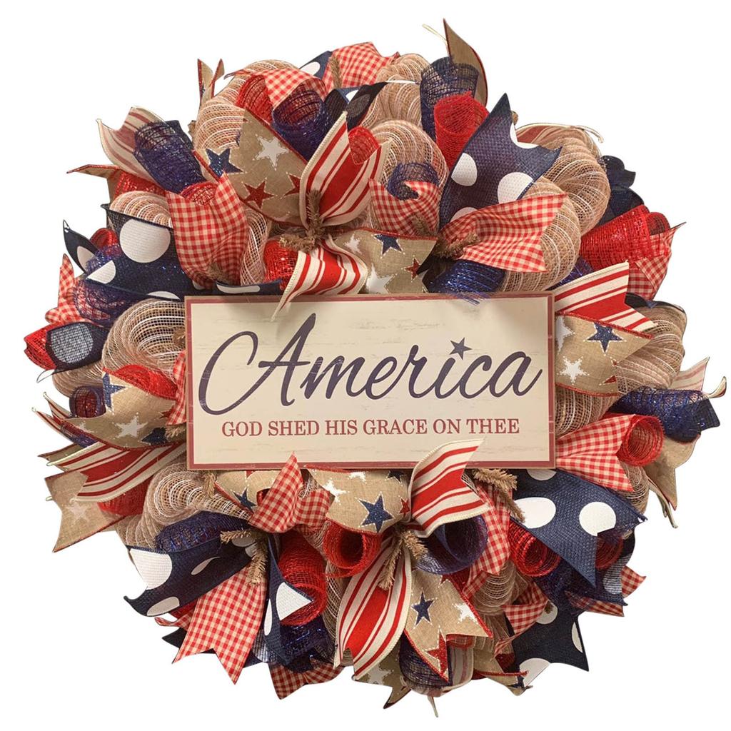 Independence Day Wreath Porch Decoration Front Door Outdoor Hanging Wreath Decor