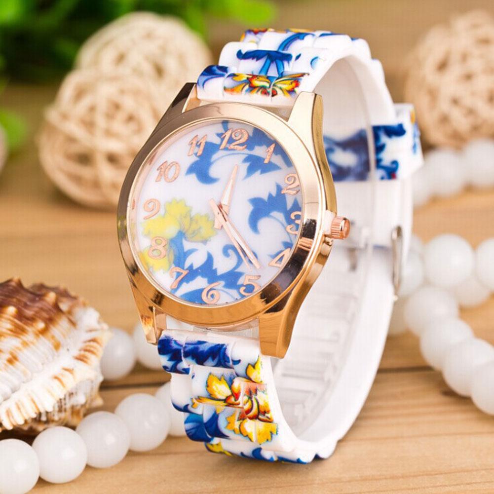 Women's Printed Watch,Fashionable-Quartz Ladies Floral Dial Wristwatch,Fashion Quartz-Analog Watch Thin Band Watches