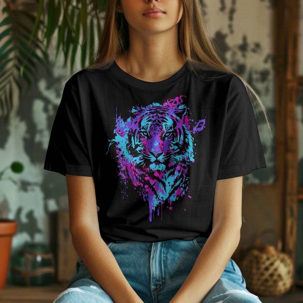 Vibrant Illuminated Colors Tiger Tee, Unisex Bigcat Neon Nature Lover T-shirt