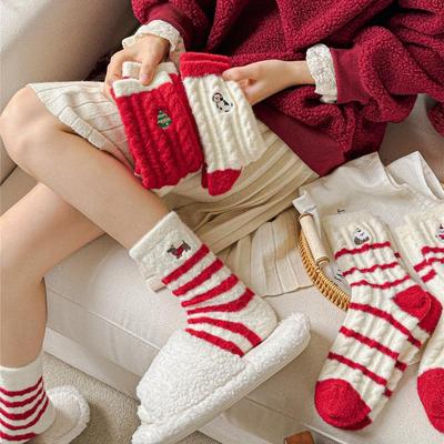 1/4 Pair Autumn Winter Christmas Pattern Mid-Tube Socks Christmas Tree Snowman Sausage Dog Embroidery Cotton Socks New Year Gift