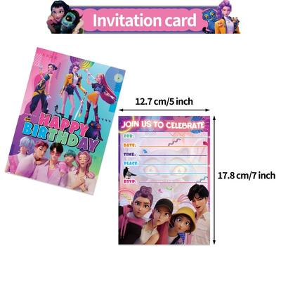12pcs KPop Demon Hunters Party Invitation Card Anime Kids Birthday Greeting Card Single-Page Invitation Card Party Decoration