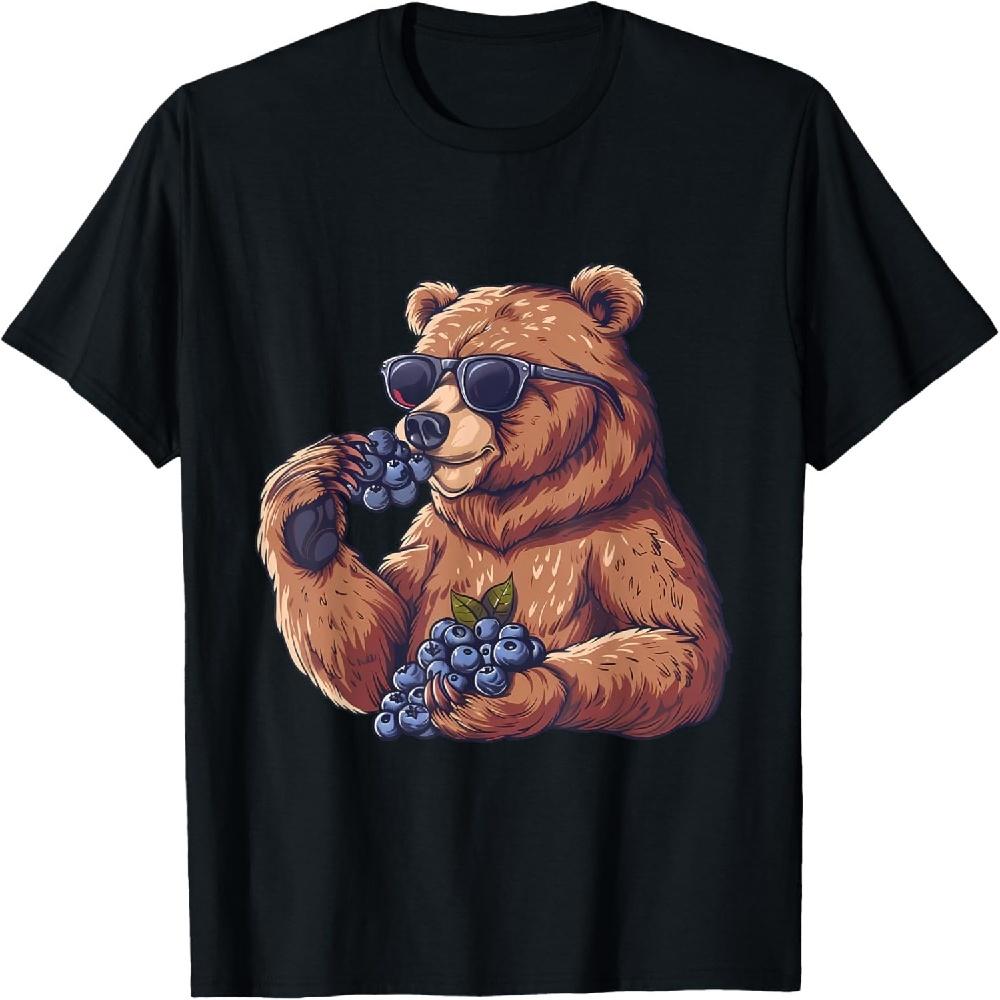 Blueberry Bear Sunglasses Artwork Watercolor Motif Portrait T-Shirt