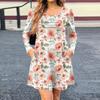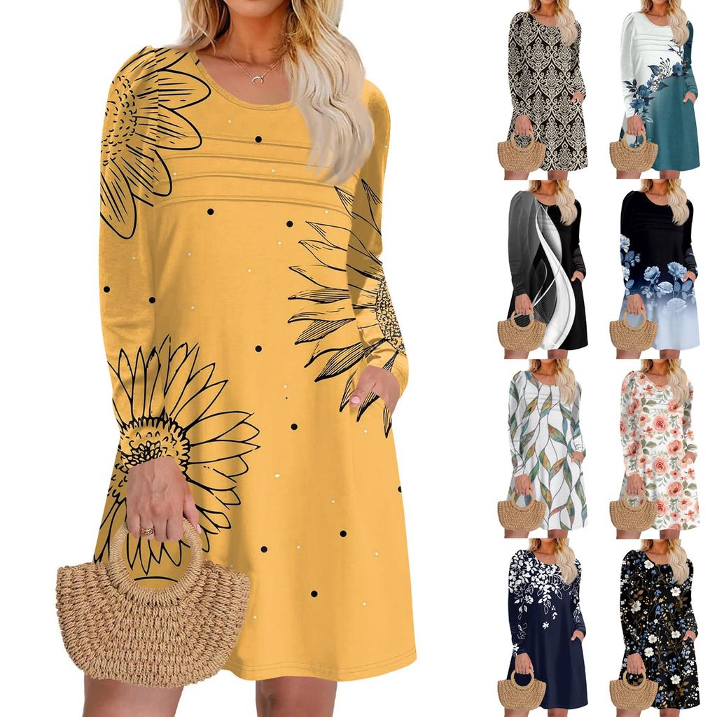Women's Long Sleeve Dress Fall Casual T Shirt Loose Fit Pleated Front Dresses With Pockets