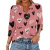 Women's Loose 7-inch Sleeve Top with Heart Print