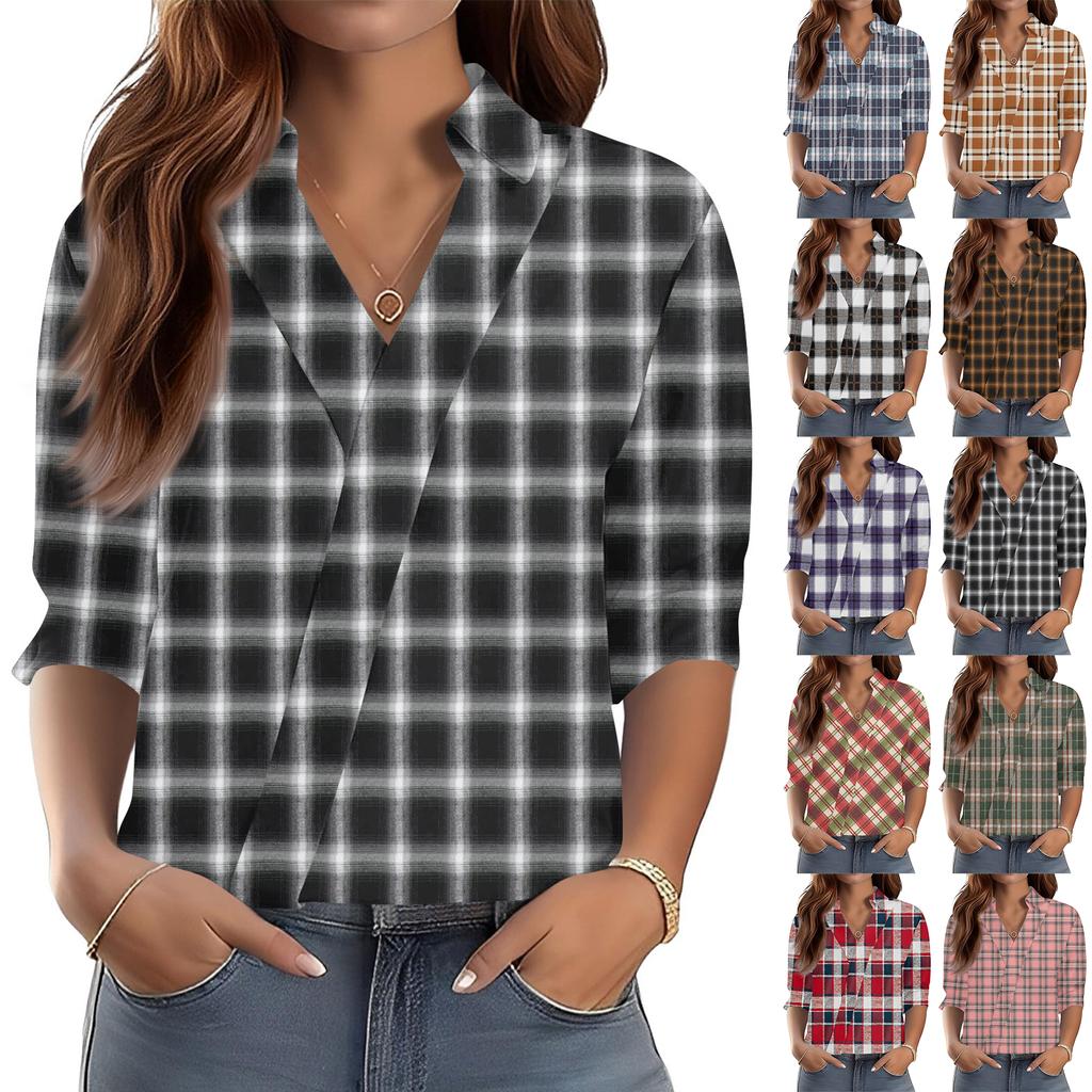 3/4 Length Sleeve Womens Tops V Neck Shirts Trendy Printed Business Casual Work Blouses