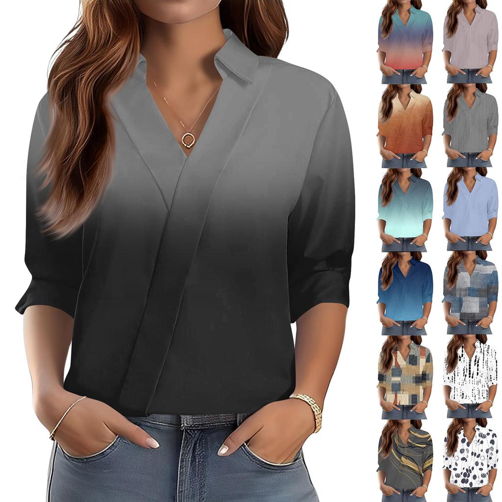 3/4 Length Sleeve Womens Tops V Neck Shirts Trendy Printed Business Casual Work Blouses