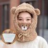 Cute Bear Ear Fluffy Hat Winter Windproof Balaclava Mask Scarf Neck Warmer for Cycling Outdoor Sports Unisex Adult Kids