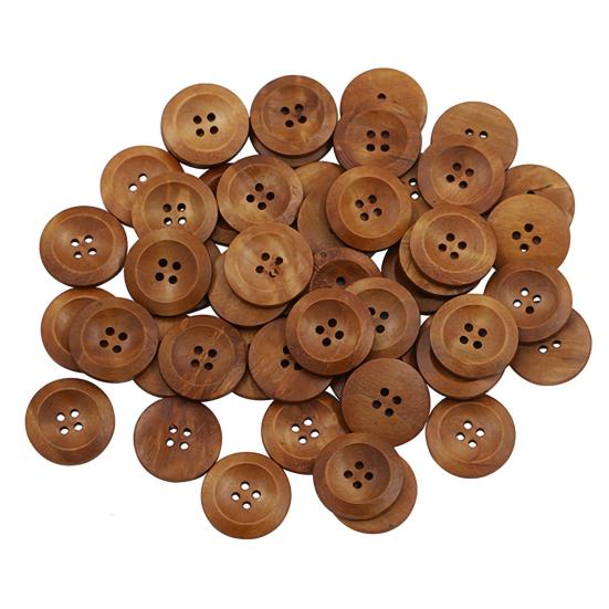 50Pcs Buttons 4 Holes Wooden Cloth Ornaments Round Decorative Button for