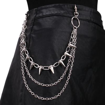 Punk Spike Rivet Layered Metal Chain Keychains For Men Women Pants Jeans Biker Gothic Rock Belt Chains Jewelry Accessories Gift