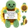 Mini Funny Turtle Positive Crochet Animals Doll With Card Desktop Ornament Emotional Support Handmade Knitted Cheer Up Toy