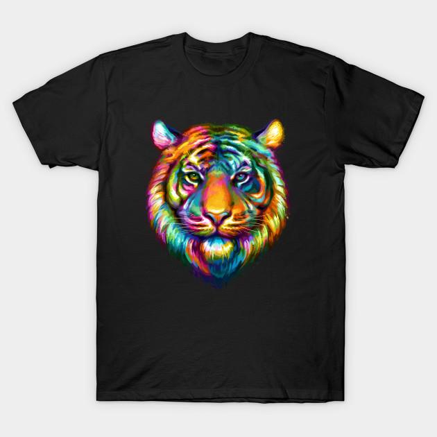 Men Black Print T-shirt Tiger No-Cut Transfer Paper Print Cotton Tshirt