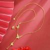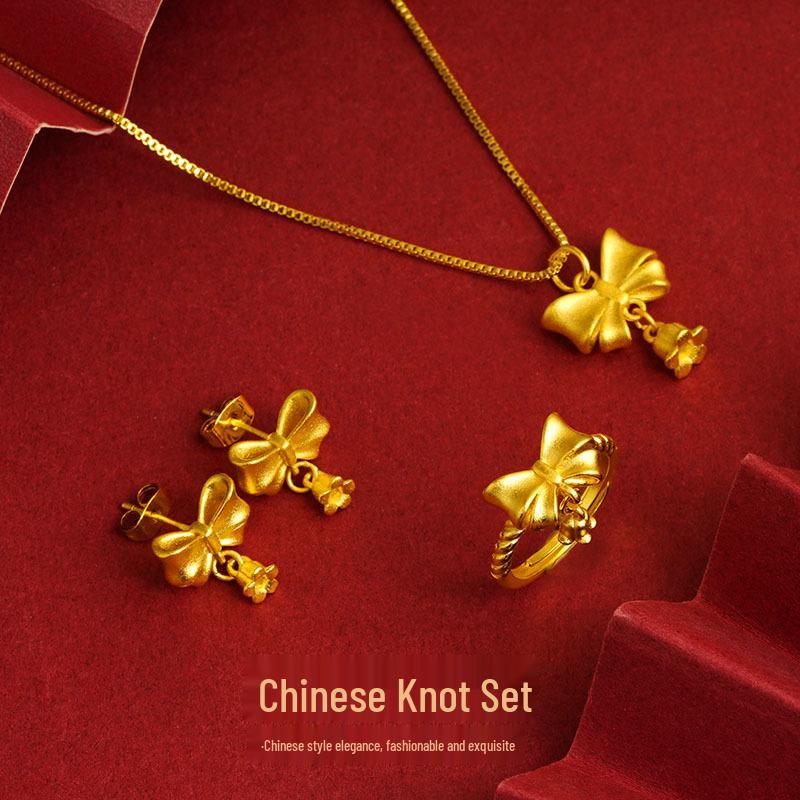Vietnam Gold-Plated Clover Necklace, Ring & Five-Flower Bracelet Set