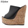 Fashion Eilyken Fashion Peep Toe Platform Wedges Women Slippers High Quality PU Leather Sandals 2025 New Summer Solid Heels Ladies Shoes