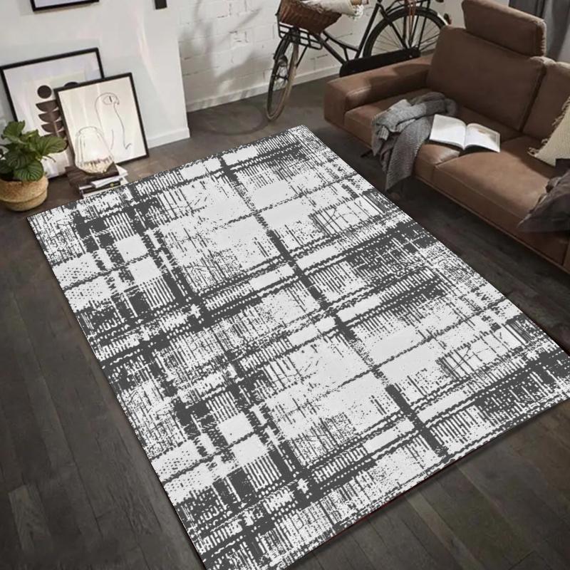 Black White Geometric Abstract Pattern Area Rug Modern Minimalist Floor Mat Non-Slip Carpet for Living Room Home Decoration