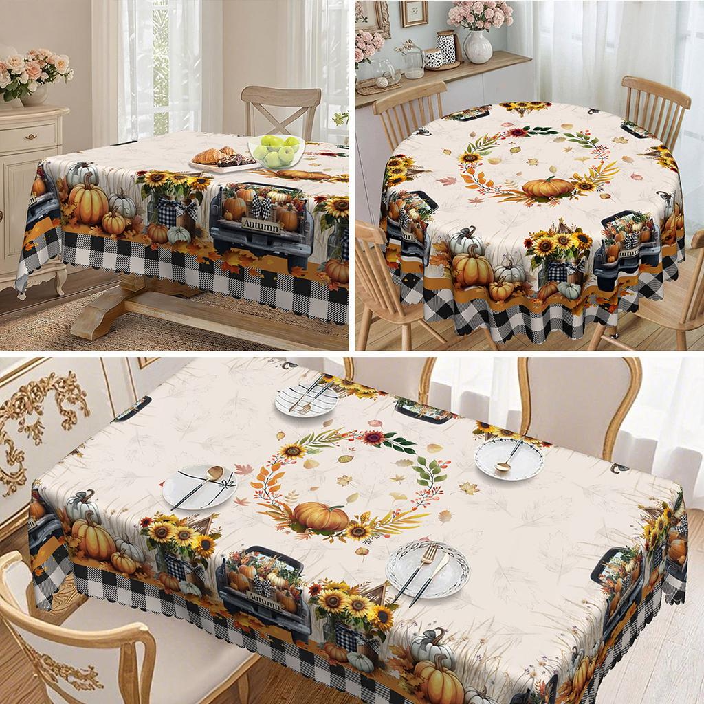 Pastoral Round Tablecloths And Rectangular Tablecloths, Pumpkin Sunflower Patterns Create A Warm Autumn Table Tablecloth