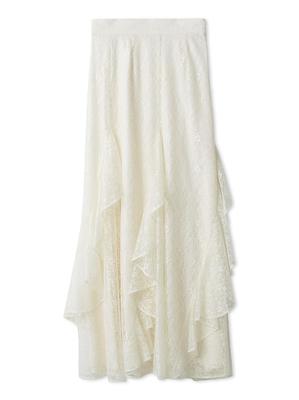 Gebacades Elastic Lace Pleated Tulle Maxi Beige Women's High-Waisted Tie-Down Skirt,