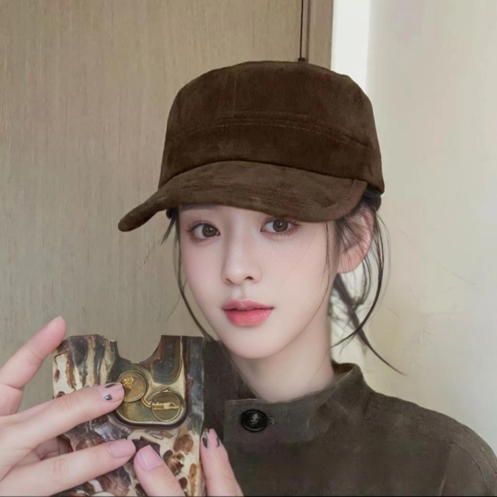 2025 New Retro Suede Flat Top Hat Women's Fashion Versatile Cap Casual Face Small High Quality Equestrian