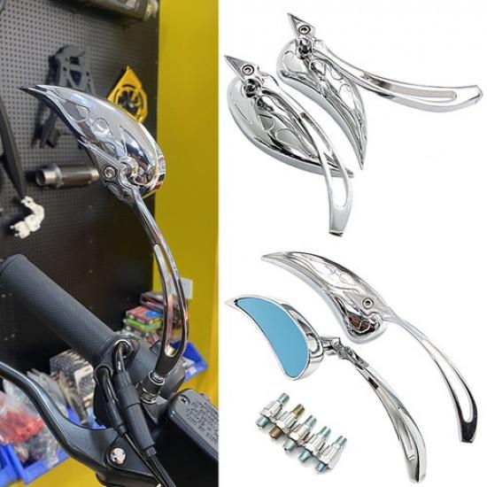 2Pcs For Harley Chrome Motorcycle Mirror 8mm 10mm Teardrop Rearview Side Mirrors