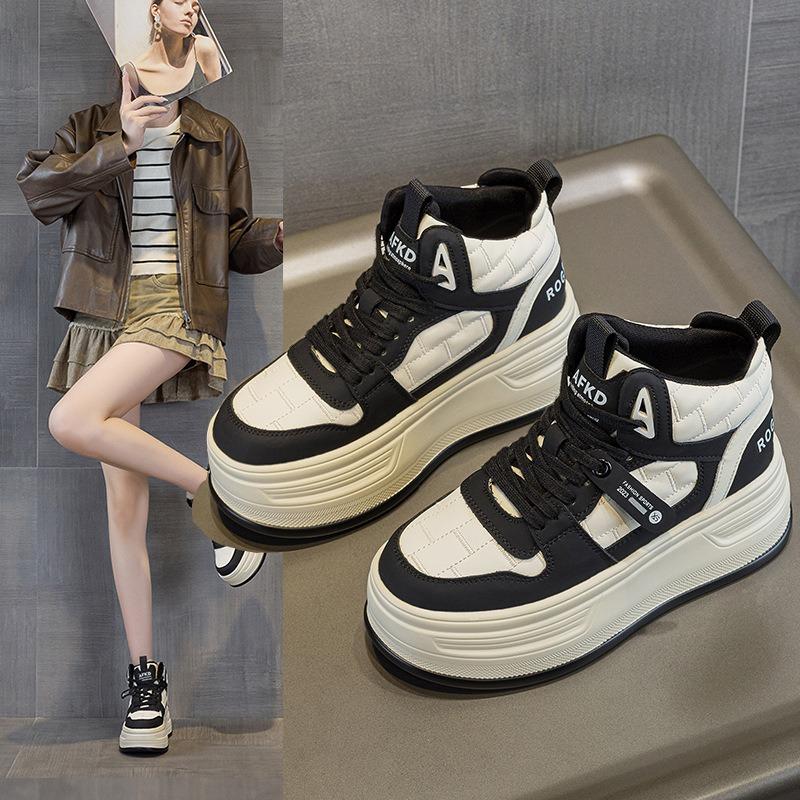 Heightened Thick-soled Fashionable Versatile Autumn and Winter New Single Shoes Rabbit Hair Trend Cotton Warm Women's Shoes Student High-top Shoes