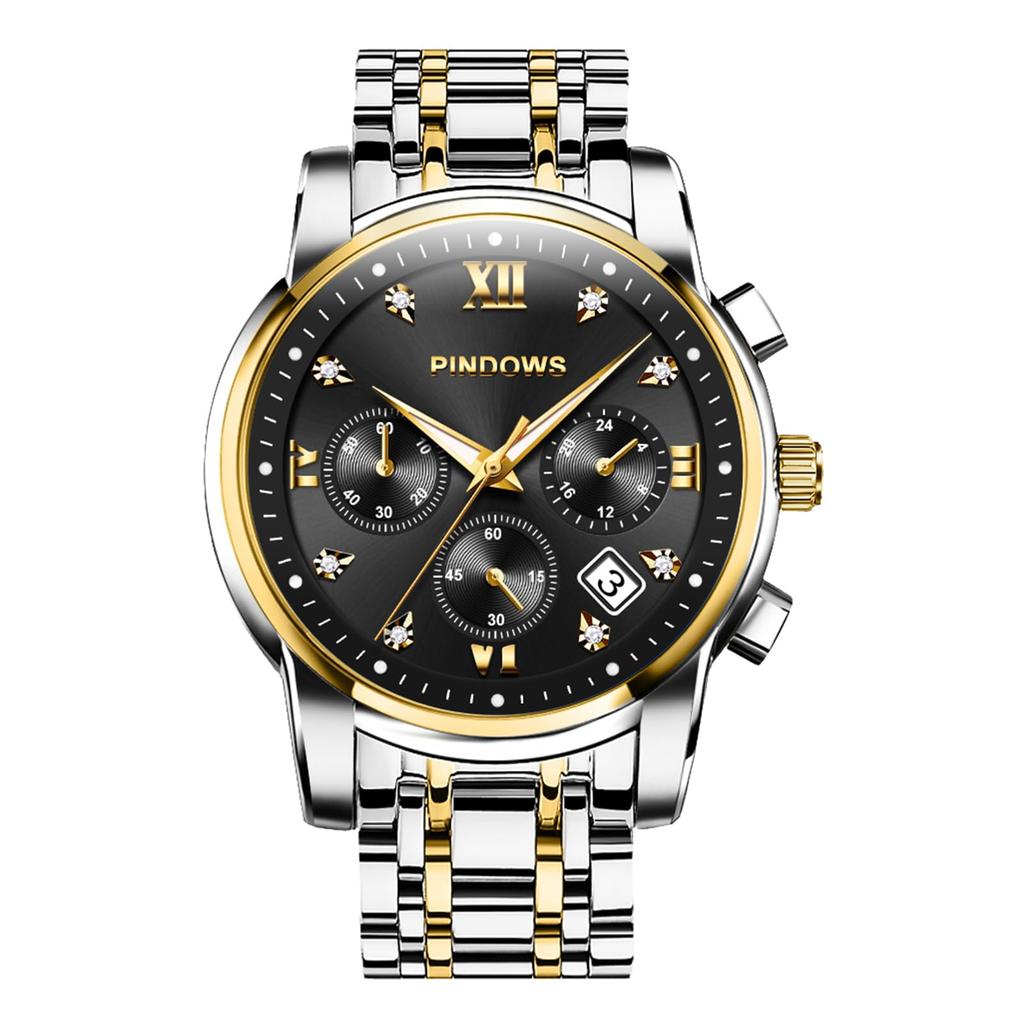 Stylish Business Design: PINDOWS men's watches feature a diamond-accented Roman numeral dial and a polished two-tone stainless steel case and bracelet. This men's watch perfectly blends sophistication and modern style. Perfect for business meetings and casual outings.