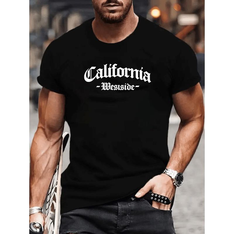 European Sizes West California High Street Trend Letter Print, Short-sleeved Top, Patterned Printed Round-neck T-shirt