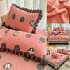 Thickened Quilted Velvet Bedspread Set with Lace Pillowcase and Static-Free Warm Temperature Control