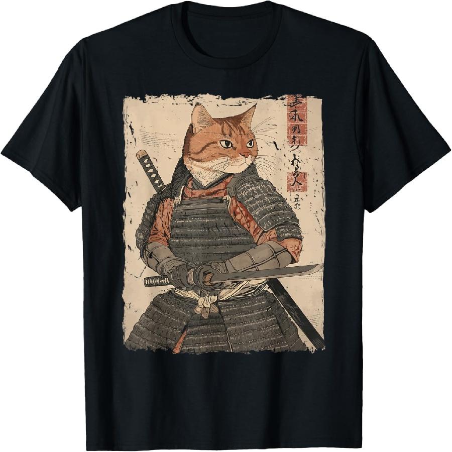 Samurai Cat Warrior Japanese Ukiyo-e Artwork Cat Samurai T-Shirt