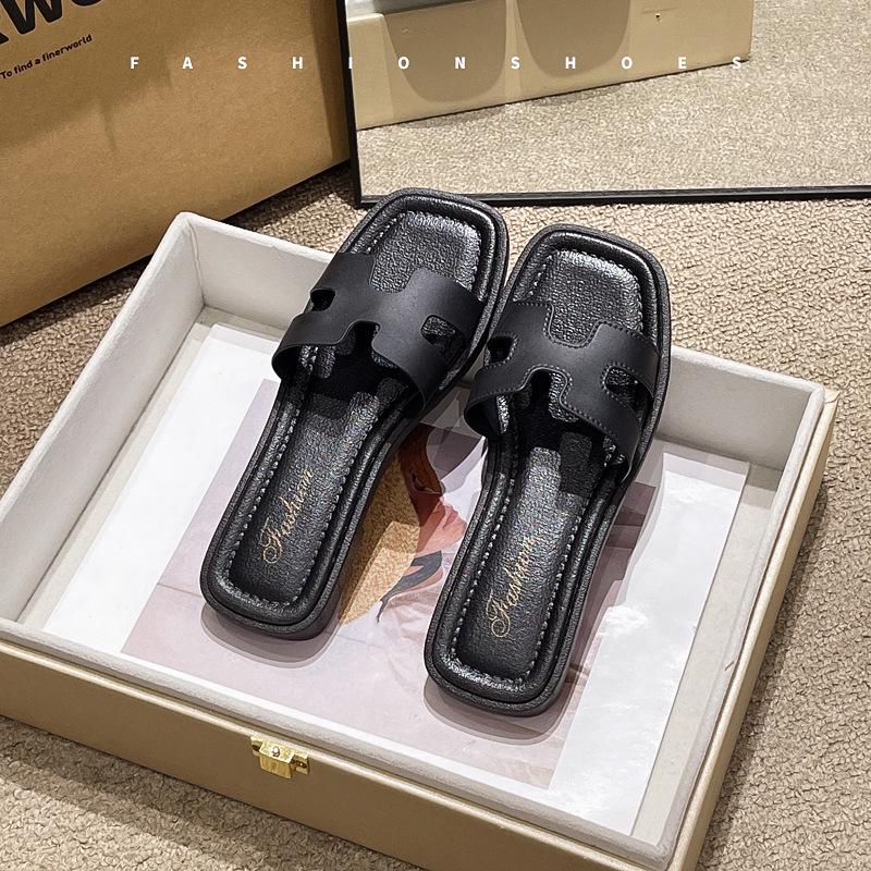 Korean-Style Square Toe Summer Flip-Flops for Women and Kids: Fashionable Outdoor Beach Sandals
