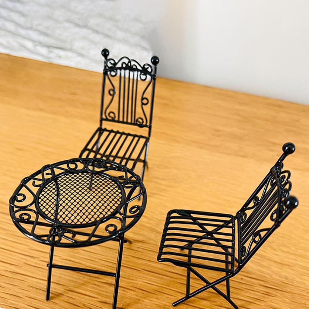 3 Pieces 1/12 Mini Outdoor Desk Chair Table Ornaments Scenes Miniature and for