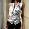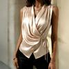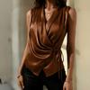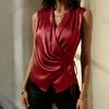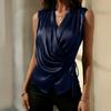 Women's Satin Sleeveless Pleated Strap -Color Vest Shirt Top