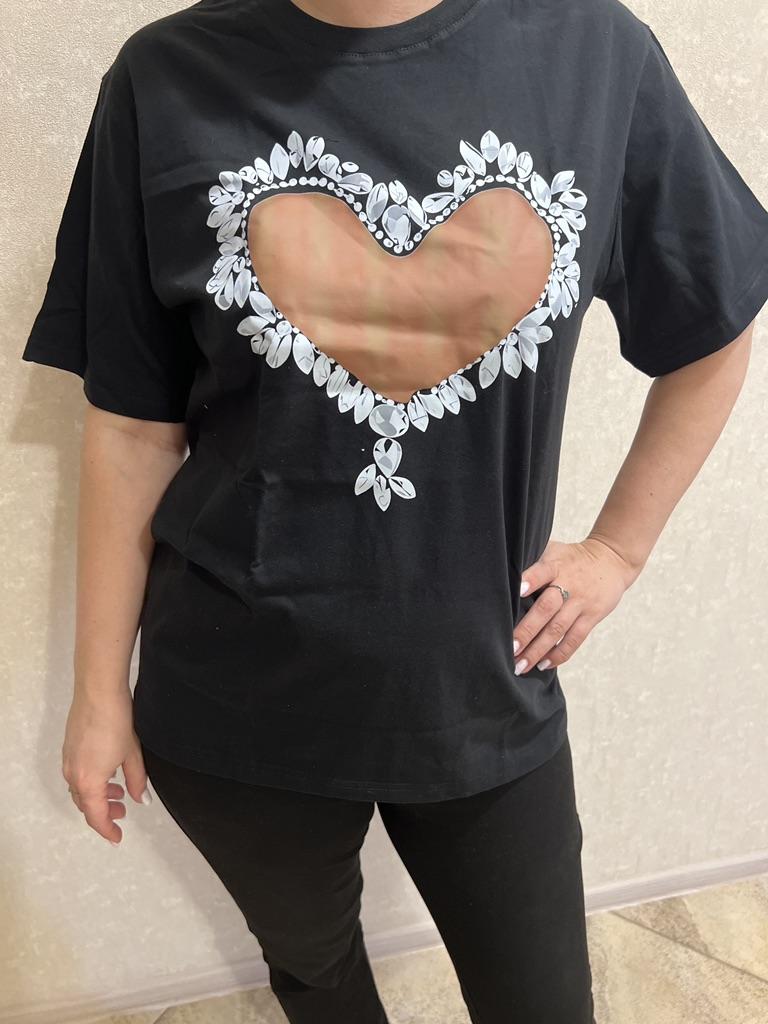 Women Black White Floral Heart Print T-Shirt Round Neck Short Sleeve Lightweight Comfort Daily Party Casual Elegant Polyester Top