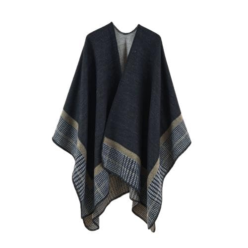 YAYUPLUS Women's Large Poncho/Polero/Shawl Top, Autumn/Winter Knit Cape Coat, Check Pattern, Winter Wear, Stylish Casual Outerwear (Black/Khaki)