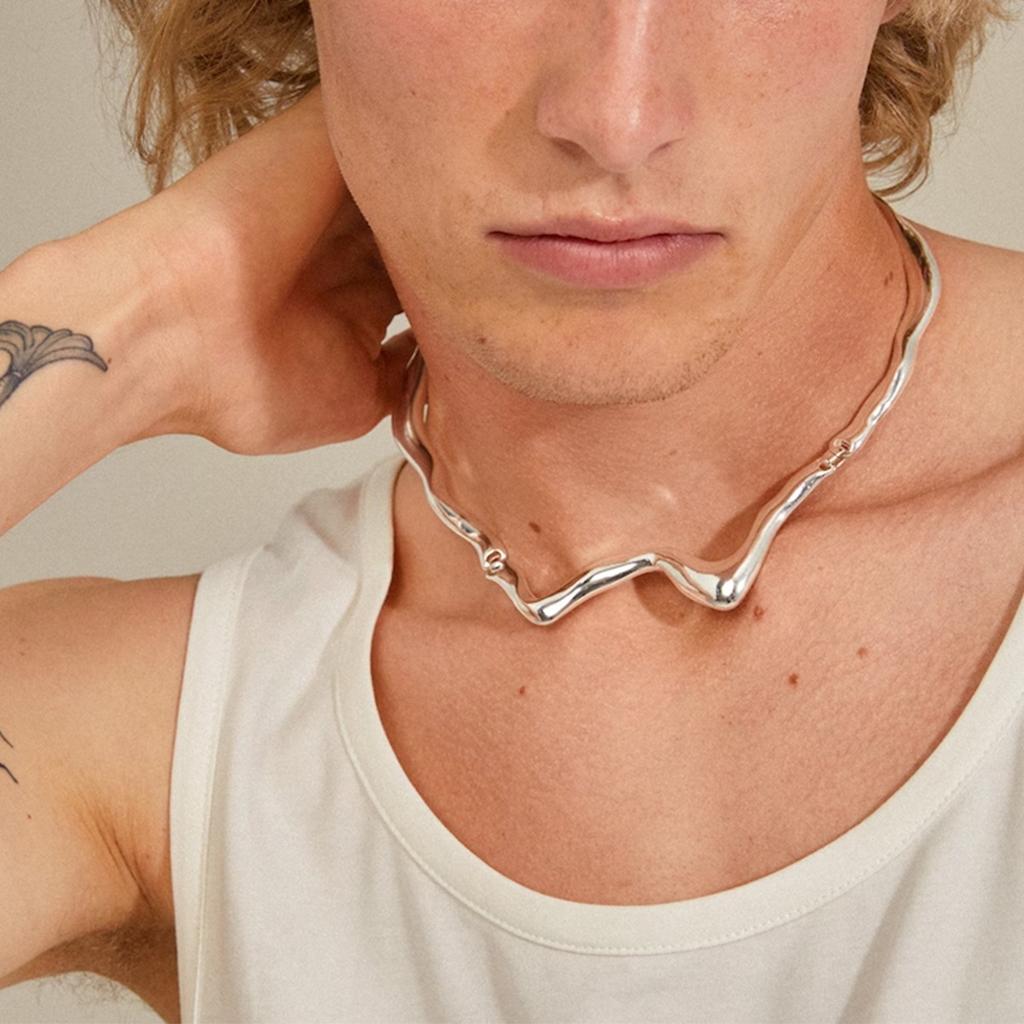 Liquid Metal Choker Men's Trendy Hip-Hop Niche Design Lava Collarbone Chain Necklace for Men