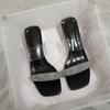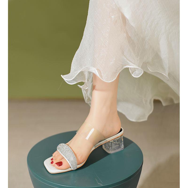 Slippers Outer Wear Summer Shoes Medium Heel Thick Heel Crystal Transparent Word with Cool Slippers