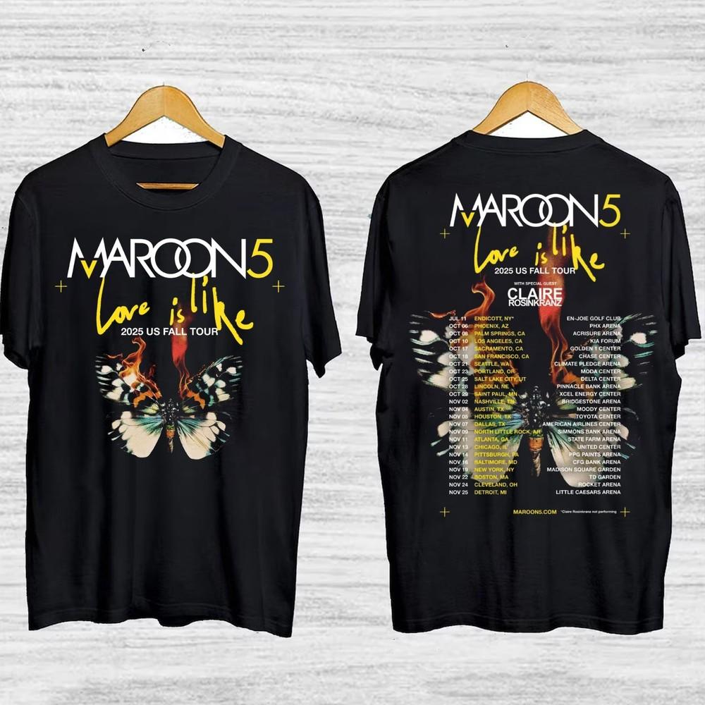 Classic Maroon 5 Tour Love Is Like2025 Cotton Men All Size 20D1162 Unisex T-Shirt