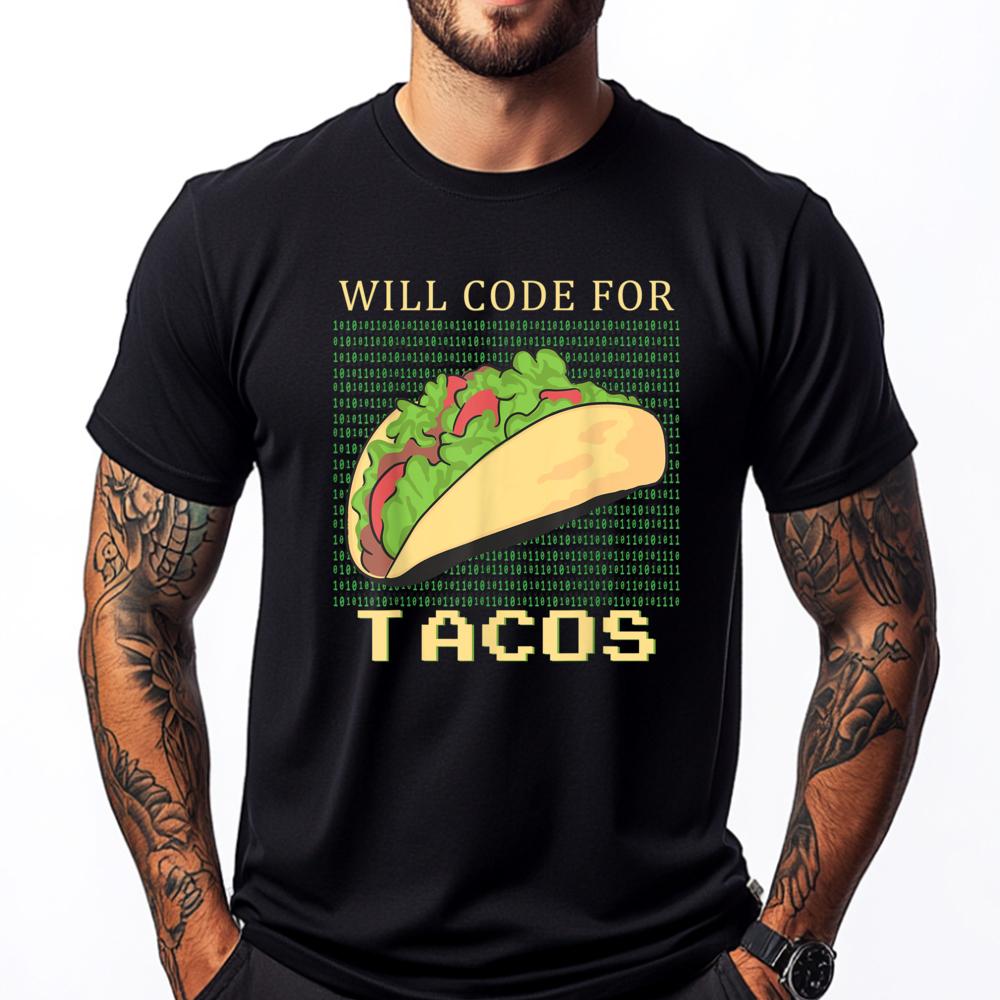Will Code For Tacos Software Developer Coder Black T Shirt Man Clothes