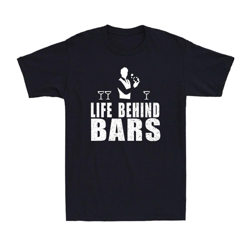 Life Behind Bars Bartender Booze Alcohol Funny Gift Men's Cotton T-Shirt T-shirt Unisex T-Shirt