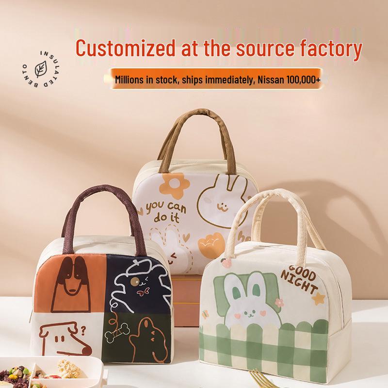 Compact Insulated Bento Lunch Bag with Thickened Aluminum Foil - Cute Cartoon Design for Students
