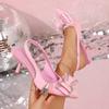 2026 New Elegant Light Luxury Pointed High Heels Rhinestone Bow Women's Shoes Suede Light Mouth Stiletto Fashion Sandals