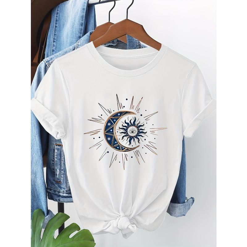 European Size Sun and Moon Series Printed Short-Sleeve T-Shirt