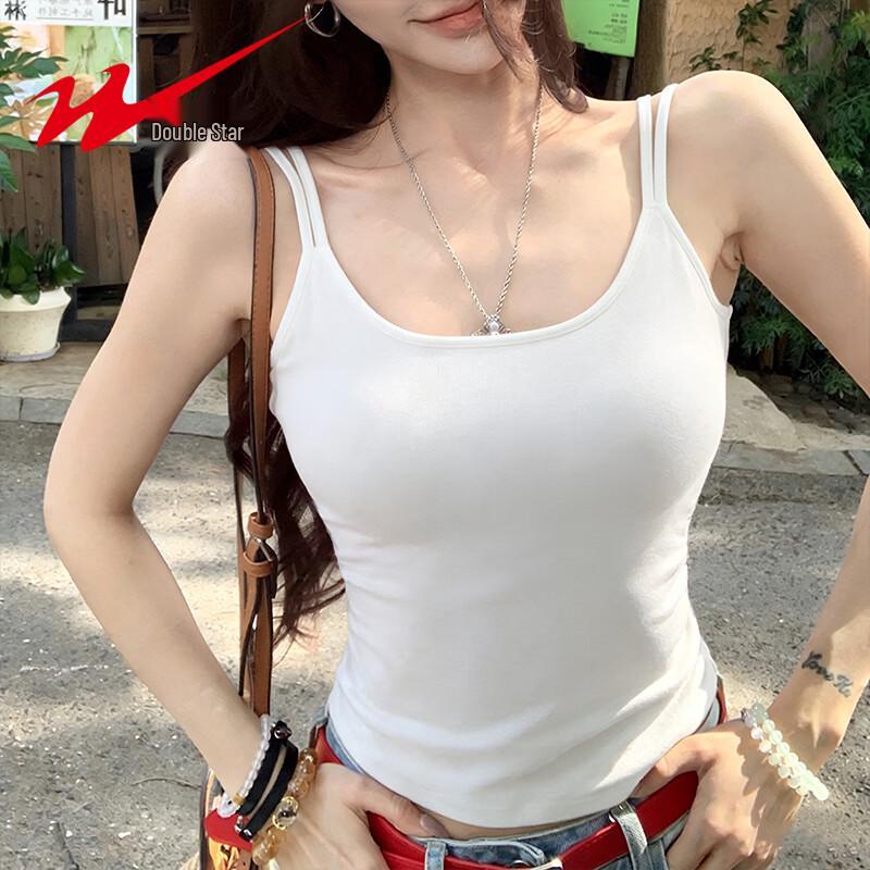 Shuangxing Women's Summer Pleated Camisole Tank Top with Built-in Chest Pads