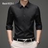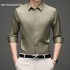 Men's Solid Color Iron-Free Stretch Korean Style Slim Fit Long Sleeve Business Casual Shirt - White